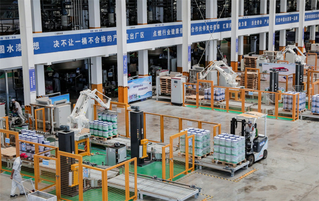“用國際一流、自動化程度最高的生產線,一是確保產品質量穩定,并不斷創新提質;二是保證持續擴大產能。”劉善江表示,雖然在發達國家涂料市場,水漆占有率已達80%,而在我國水漆占比尚不足10%,隨著工業制造領域加快推進綠色低碳轉型,涂料市場“油轉水”也正在加速,為水漆的普及使用創造了巨大的市場發展空間。